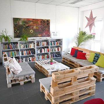 Die Schulungsräume in der Lilienthalstraße 39-45 sind ebenerdig und auch für Schwerbehinderten leicht zugänglich. Die Einrichtung der Räume sorgt mit ihrer sachlich-ruhigen Gestaltung für eine angemessene Lernumgebung; viel Licht und der ganz besonders schöne Blick auf die südhessische Riedlandschaft machen Lernen in entspannter Atmosphäre zum Erlebnis. In der „Halbzeit“ – die Unterrichtszeit liegt zwischen 8 und 16:15 Uhr – stehen Snack-, Getränke- und Kaffeeautomaten zu Ihrer Verfügung. Für eine Pause oder gute Gespräche findet sich immer ein ruhiges Plätzchen.