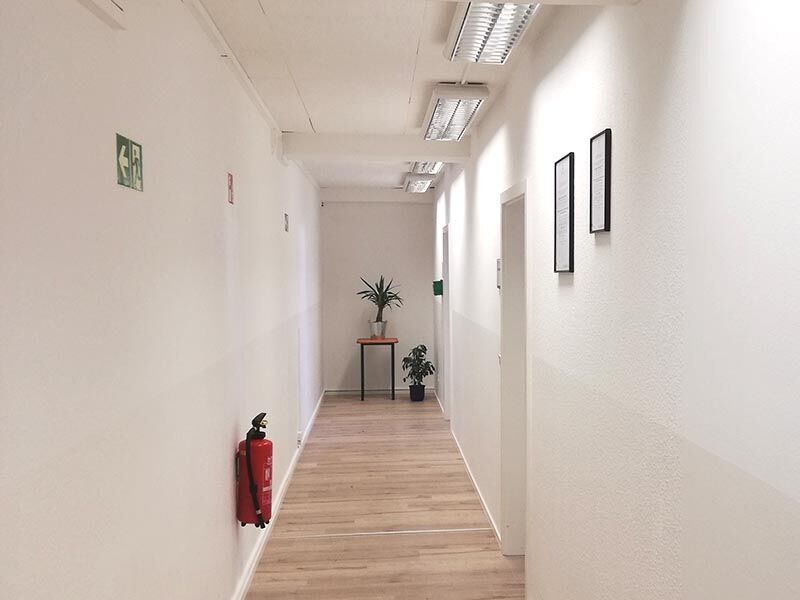 Die Schulungsräume wurden 2020 neu renoviert und unter anderem mit neuem Laminatboden ausgestattet. Große Fenster lassen viel Licht herein. Ihr Unterricht findet zwischen 8 und 16:15 Uhr statt. Aber wer viel lernt, braucht auch mal eine Pause. Machen Sie es sich im Pausenraum auf den bequemen Sitzbänken gemütlich, bedienen Sie sich in der Kaffeeküche oder genießen Sie die frische Luft im überdachten Außenbereich. Wenn Sie sich einen Snack besorgen möchten, finden Sie einen Bäcker und Metzger in der nahen Umgebung. Ein Dönerimbiss lockt etwas weiter im Ort. Und der nahegelegene Golfplatz bietet ein italienisches Restaurant.
