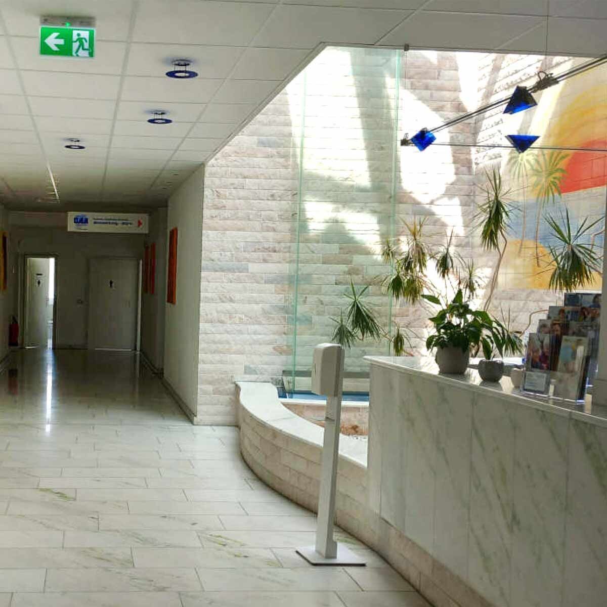 Hereinkommen und wohlfühlen: Über den Empfang mit freundlichem Lichthof erreichen Sie barrierefrei die Schulungsräume im ersten Stock, die mit vielen Fenstern und Teppichboden für eine angenehme Atmosphäre sorgen. Pause gefällig? Zur Entspannung und Stärkung steht der Aufenthaltsbereich für Sie bereit. Dazu gehören die voll ausgestattete Küche – unter anderem mit Kaffeemaschine, Mikrowelle und Geschirrspüler – sowie Tresen und Barhocker, Tische und Stühle.