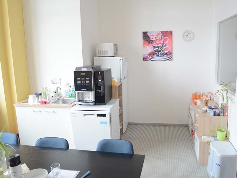 Wenn sich der Hunger meldet, lockt ein Imbiss auf dem Gelände. Direkt gegenüber finden Sie zwei Supermarktketten, um sich Snacks zu besorgen. Noch näher liegt das Restaurant „Delphi“ direkt im Haus. Für die kleine Pause zwischendurch steht Ihnen ein separater Raum mit Kaffeevollautomat, Kühlschrank und Mikrowelle zur Verfügung.