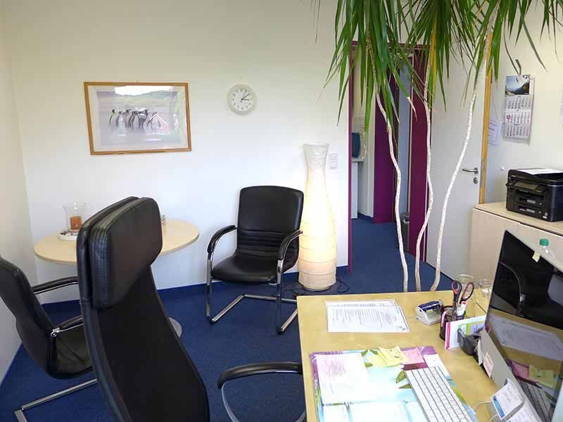 Die Räumlichkeiten befinden sich im zweiten Stock im Gebäude der Praxisklinik. Sie sind barrierearm und mit dem Aufzug erreichbar. Mit im Haus befinden sich u. a. verschiedene Ärzte, eine Altenpflegeschule und der Pflegestützpunkt von Mölln. Die hellen Räume mit moderner Möblierung und farblichen Akzenten schaffen eine angenehme Arbeitsatmosphäre, der Blick geht ins Grüne. Bei Bedarf stehen auch eine Teeküche und eine Kinderecke zur Verfügung. Der große verglaste Eingangsbereich wird gerne als Pausenraum genutzt. Vom Lernen bekommen Sie Hunger? Dann schnell in die Kantine des DRK: Sie befindet sich praktischerweise gleich mit im Haus und bietet einen günstigen Mittagstisch.
