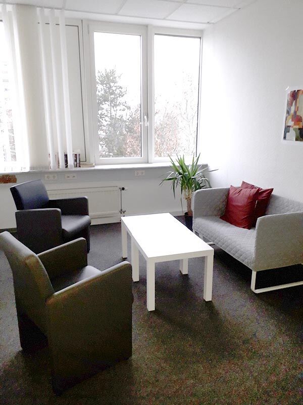 Wer viel lernt, braucht auch mal eine Pause. Entspannen Sie sich in den ansprechenden Aufenthaltsräumen mit verschiedenen Sitzmöglichkeiten, Pflanzen, Kaffeemaschine und Wasserkocher. Außerdem können Sie sich hier an den Bücherregalen bedienen und Bücher vor Ort lesen, mitnehmen oder tauschen. Auch die örtliche Tageszeitung liegt aus. Wenn Sie sich eine Stärkung besorgen möchten, finden Sie zwei Supermärkte in fußläufiger Entfernung. In der Nachbarschaft locken außerdem eine große Bäckerei mit Café sowie Restaurants und Schnellimbisse mit Snacks.